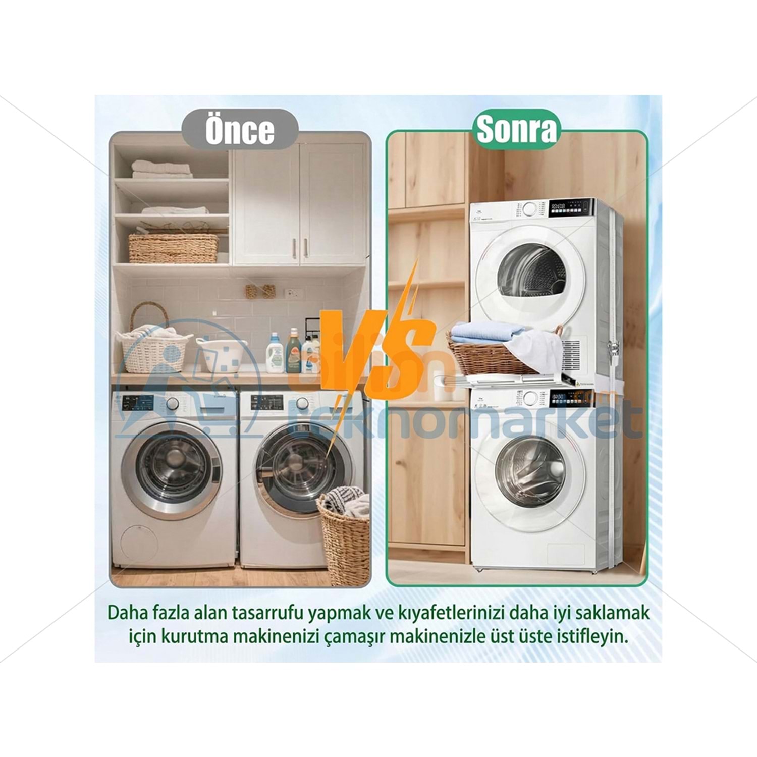 * ÇAMAŞIR MAKİNESİ ÜZERİNE KURUTMA MAKİNESİ ASKILIKLI İSTİFLEME SETİ 30986